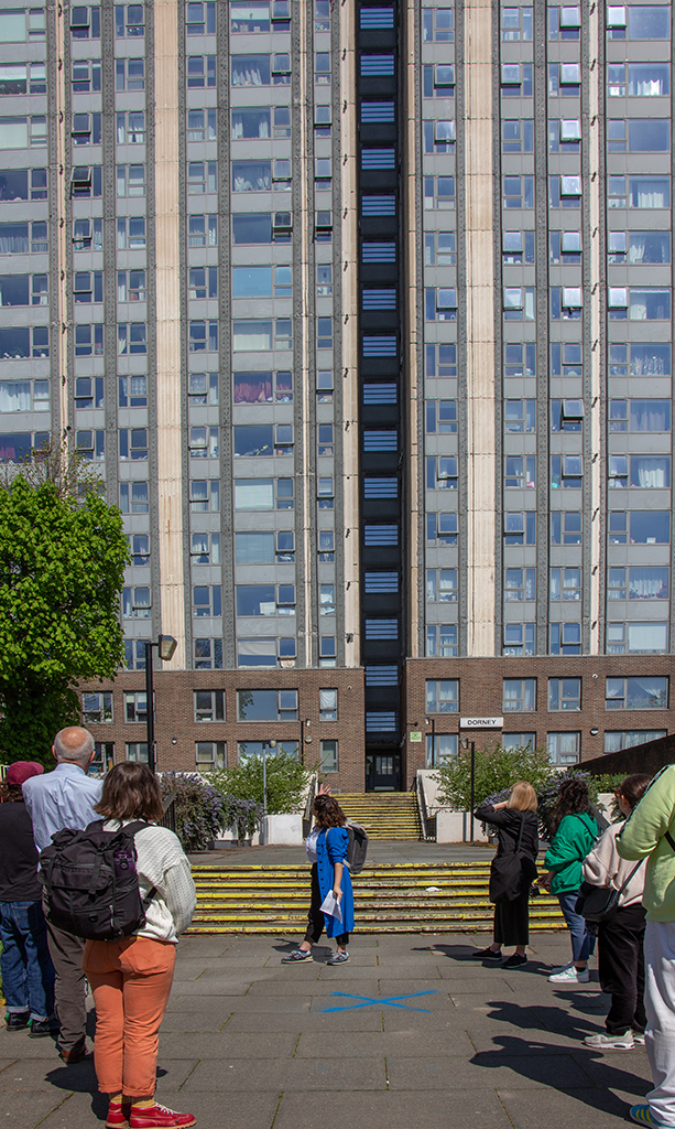 In December 2022, we commissioned Natalia Orendain to explore how the built environment shapes how we dwell in the city. The project compares three housing estates in North Camden: Chalcots, Hilgrove and Alexandra and Ainsworth all of which are connected by a dense network of railway tracks carrying people and freight to different parts of London and far beyond. Natalia’s work explored how the estates’ distinct histories of landownership shape their architectures and material forms as well how the railway has shaped the neighbourhood as a whole. The placement of bin chutes, the sociability of shared landings, and the orientation of windows all have the ability to influence how we live together. Weaving together residents’ stories, architectural histories, soil data, and building schematics, Natalia created: